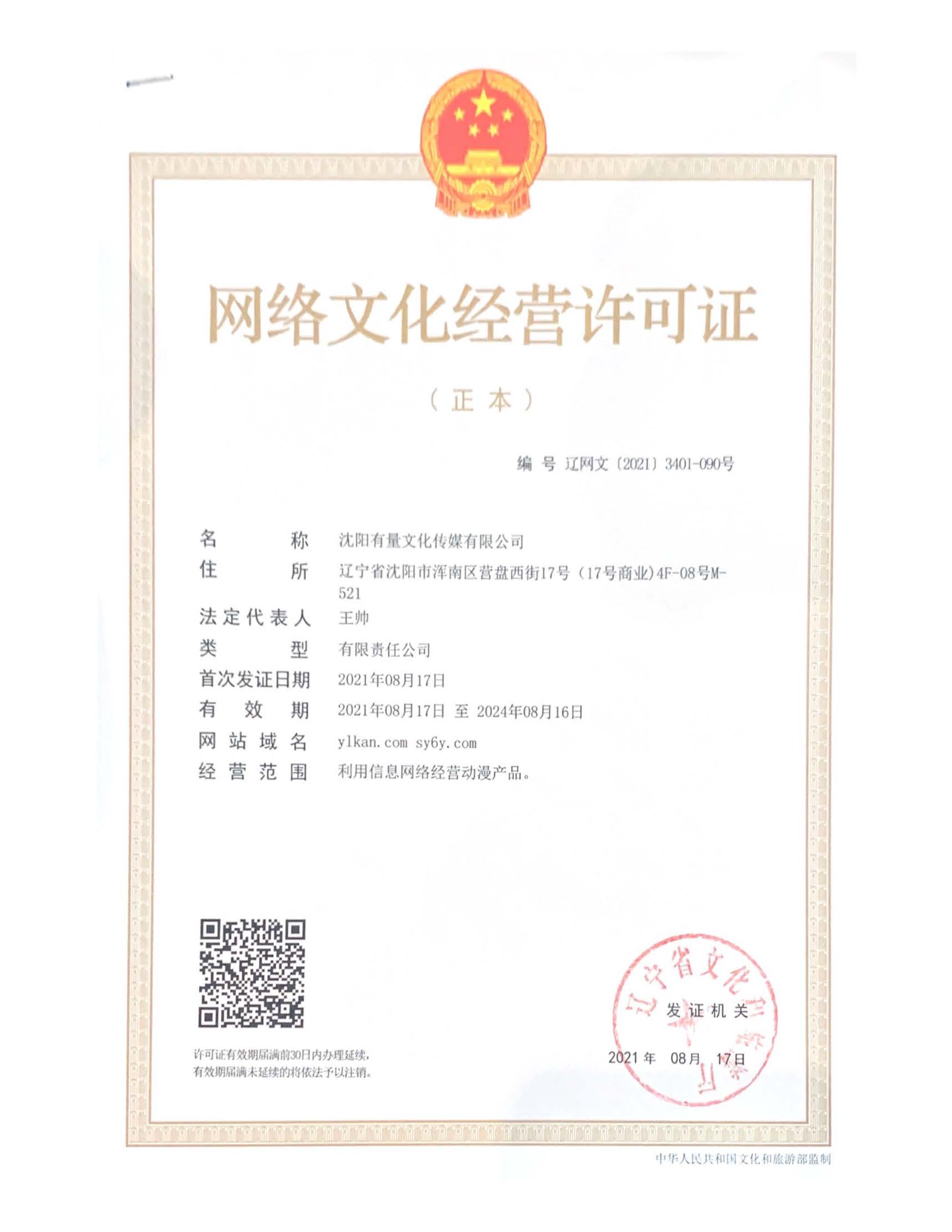 Copyright (C) 2022 沈陽有量文化傳媒有限公司 公司備案號:遼ICP備2021006768號-5 網絡文化經營許可證編號 遼網文(2024)3556-587號 營業執照
